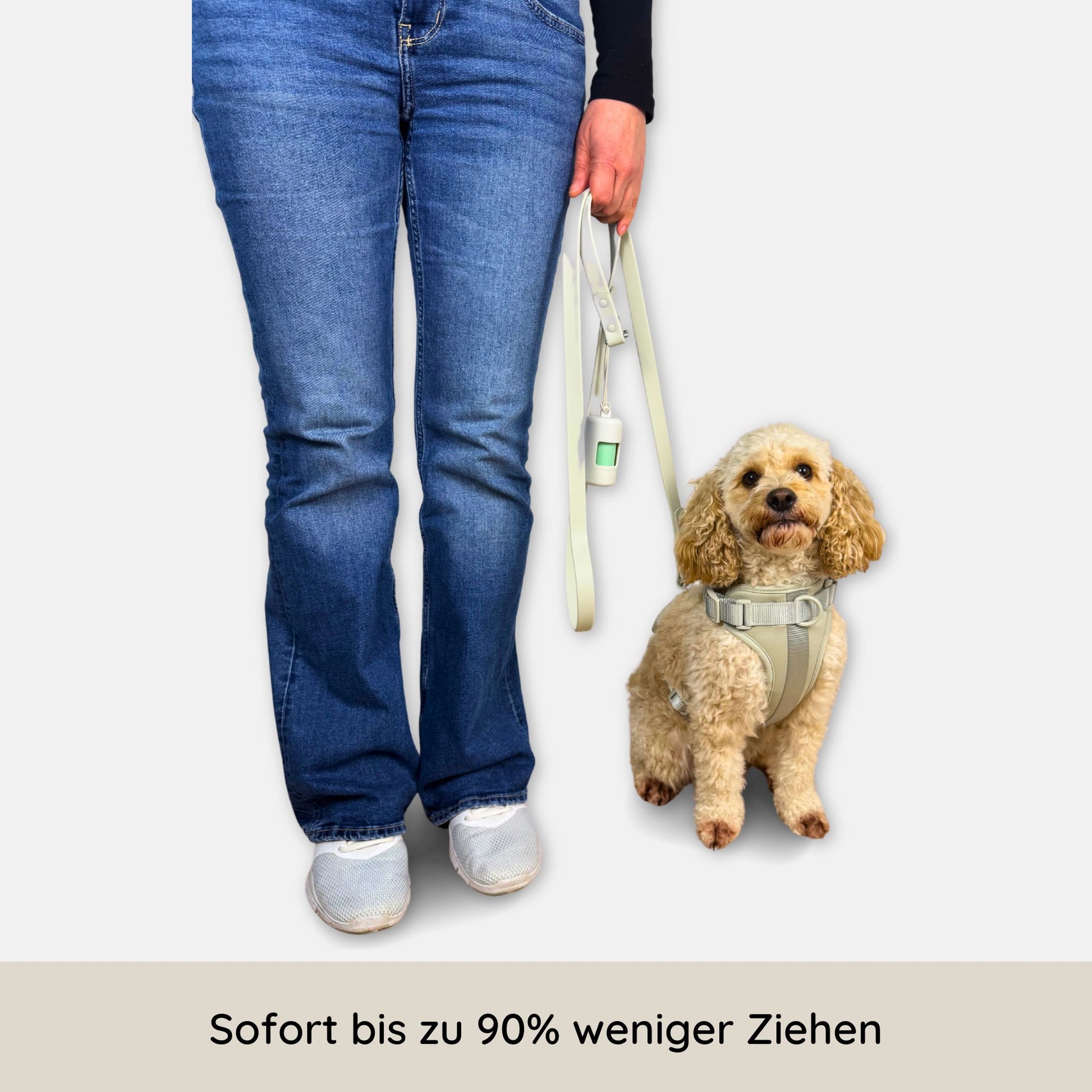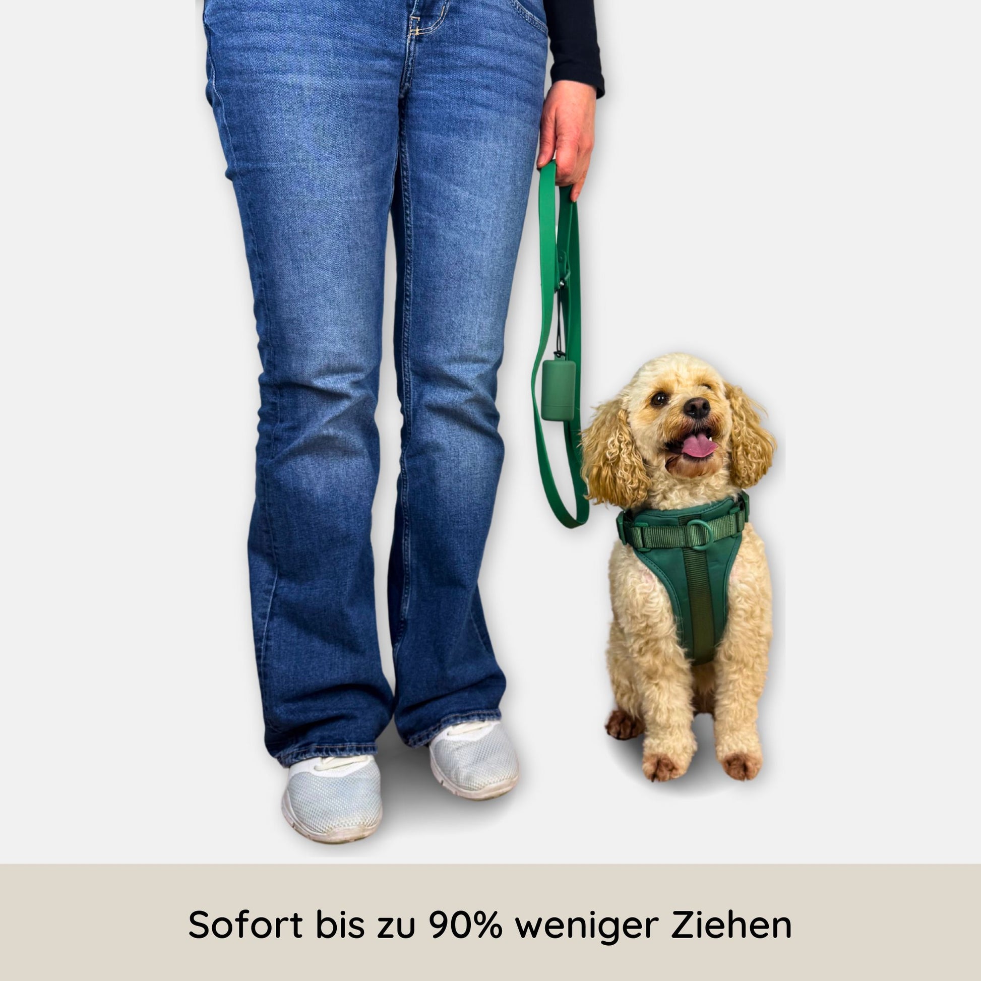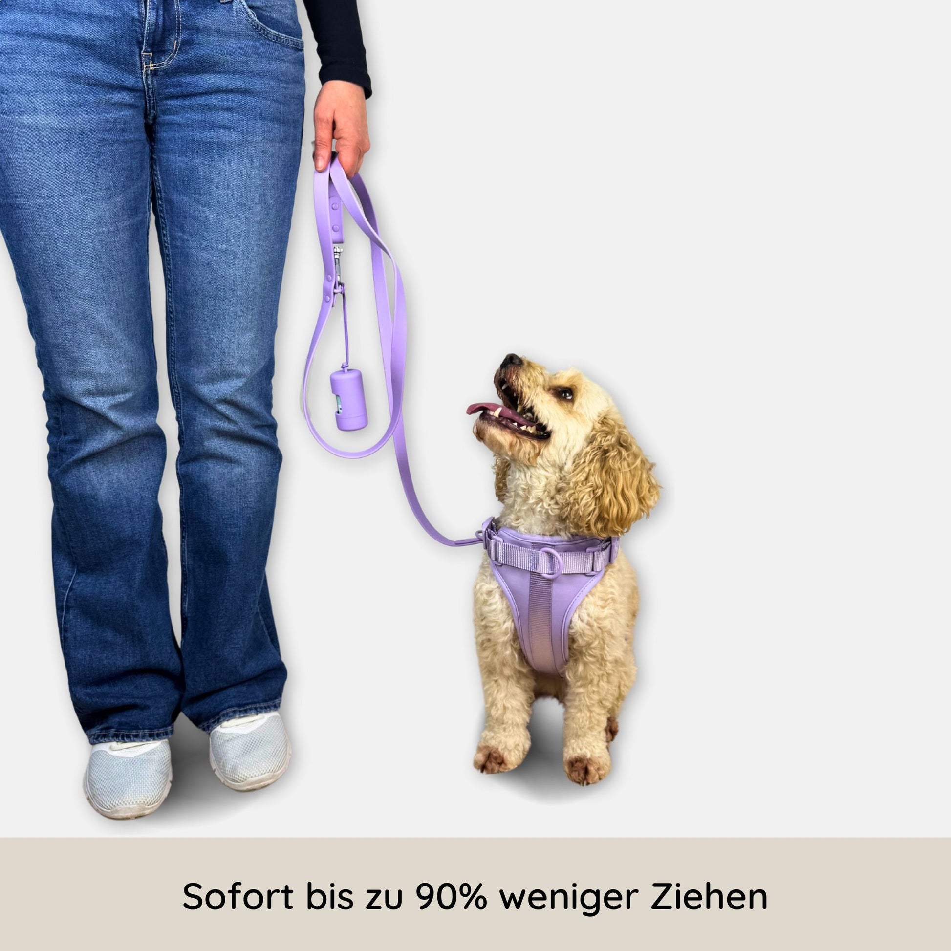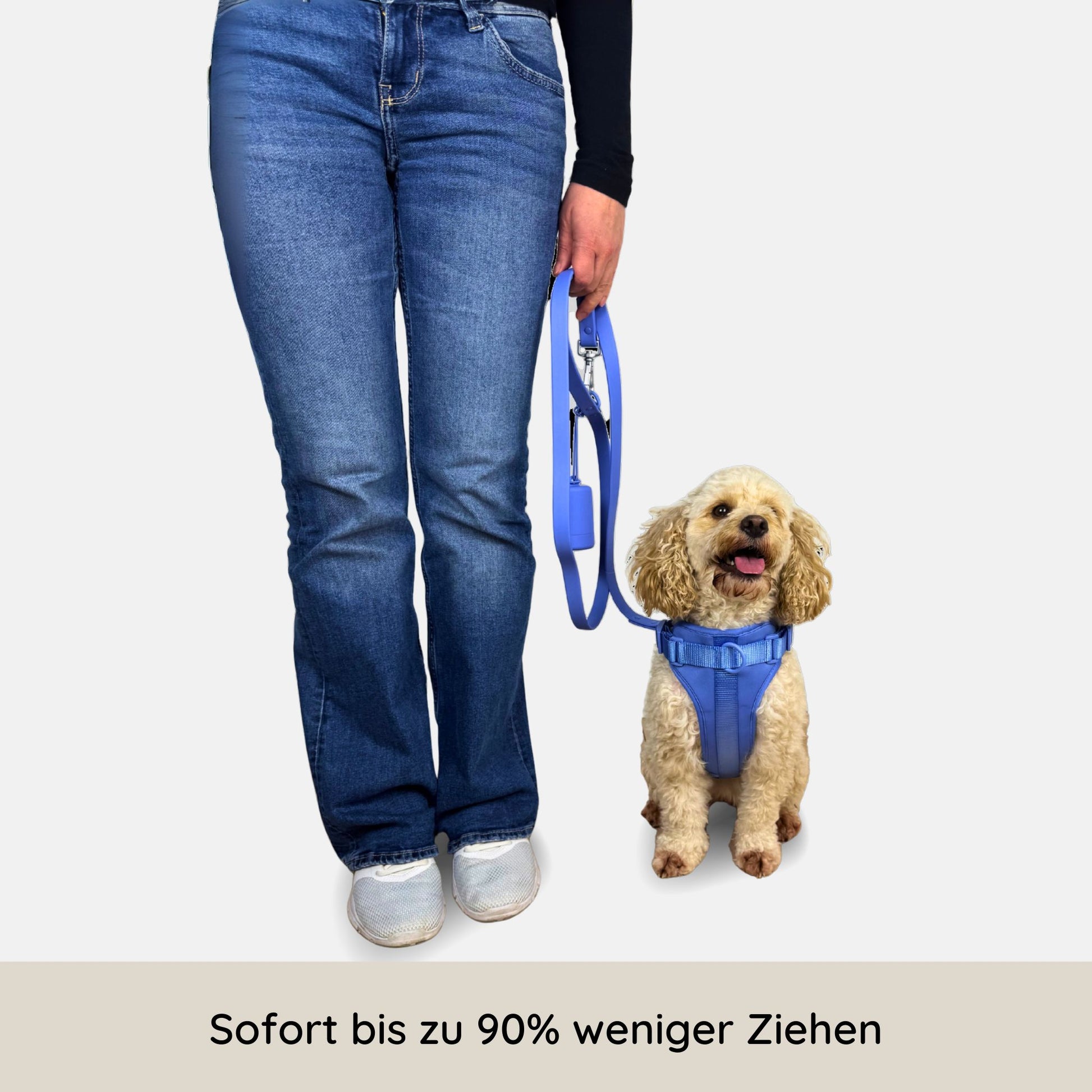 Endlich entspannt spazieren gehen, ohne Ziehen und Stress. Das No-Pull Set Pura aus Geschirr, Führleine und Kotbeutelspender sorgt für entspannte Quality-Time mit deinem Hund.
